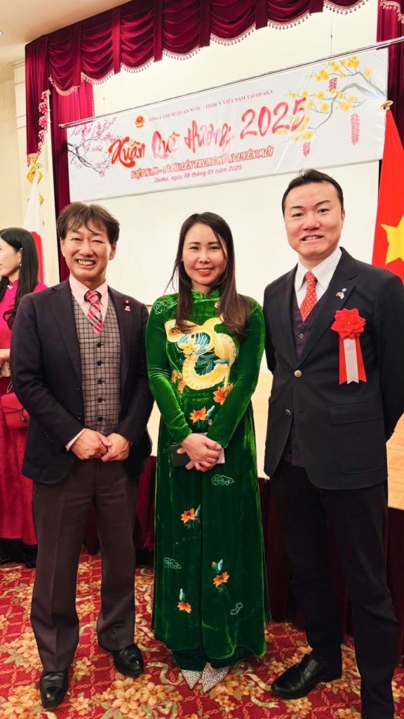尼崎市議会の日越友好議員連盟として出席し、総領事ゴー・チン・ハー氏の挨拶を皮切りに、国際色豊かな料理が振る舞われました。