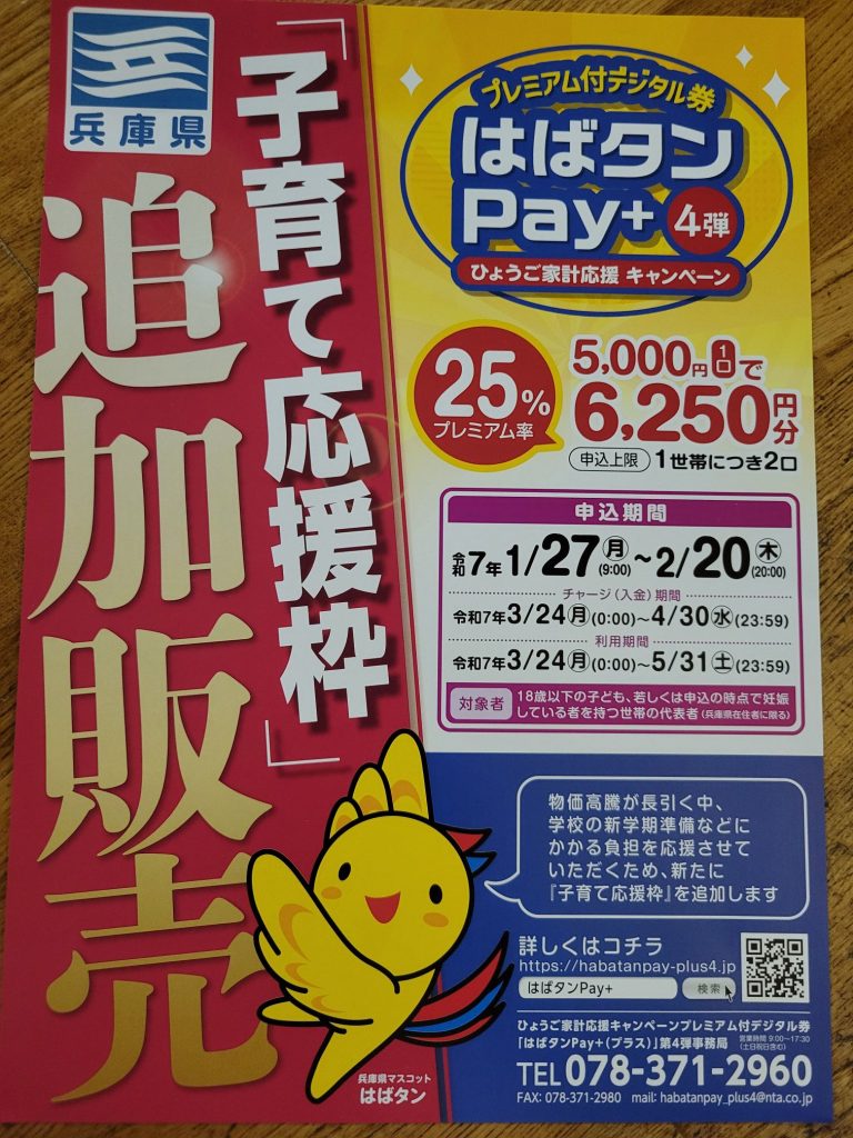 2025年1月28日 / 最終更新日時 : 2025年1月28日 林ひさひろ ブログ はばタンPay 【子育て応援枠の販売について】物価高騰が長引く中、学校の新学期準備などにかかる負担を応援させていただくため、新たに『子育て応援枠』を追加します。 FacebookXBlueskyCopy