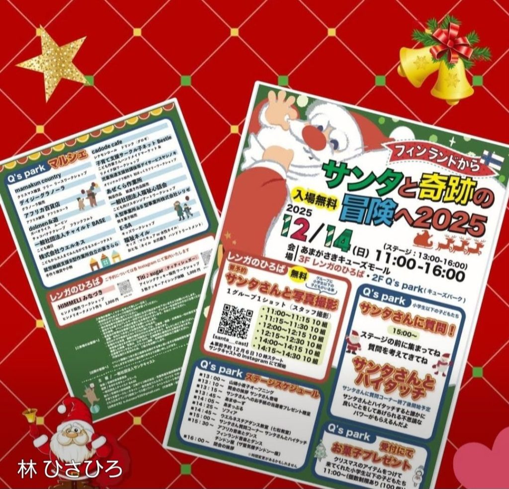2025年12月14日 / 最終更新日時 : 2025年12月14日 林ひさひろ ブログ サンタフェス あまがさきキューズモール『サンタフェス🎅』に行ってきました😊会場はサンタ🎅さんと笑顔でいっぱい🎅✨子どもたちの楽しそうな姿に、こちらまで温かい気持ちに。地域を明るくする素敵なイベントです‼️来年の開催も今から楽しみです😊 サンタフェス サンタクロース あまがさきキューズモール FacebookXBlueskyCopy
