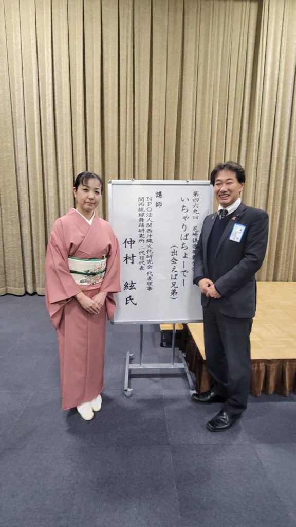 本日の朝食会では、関西琉球舞踊研究所の仲村 絃(なかむら いと)氏を講師にお迎えし、