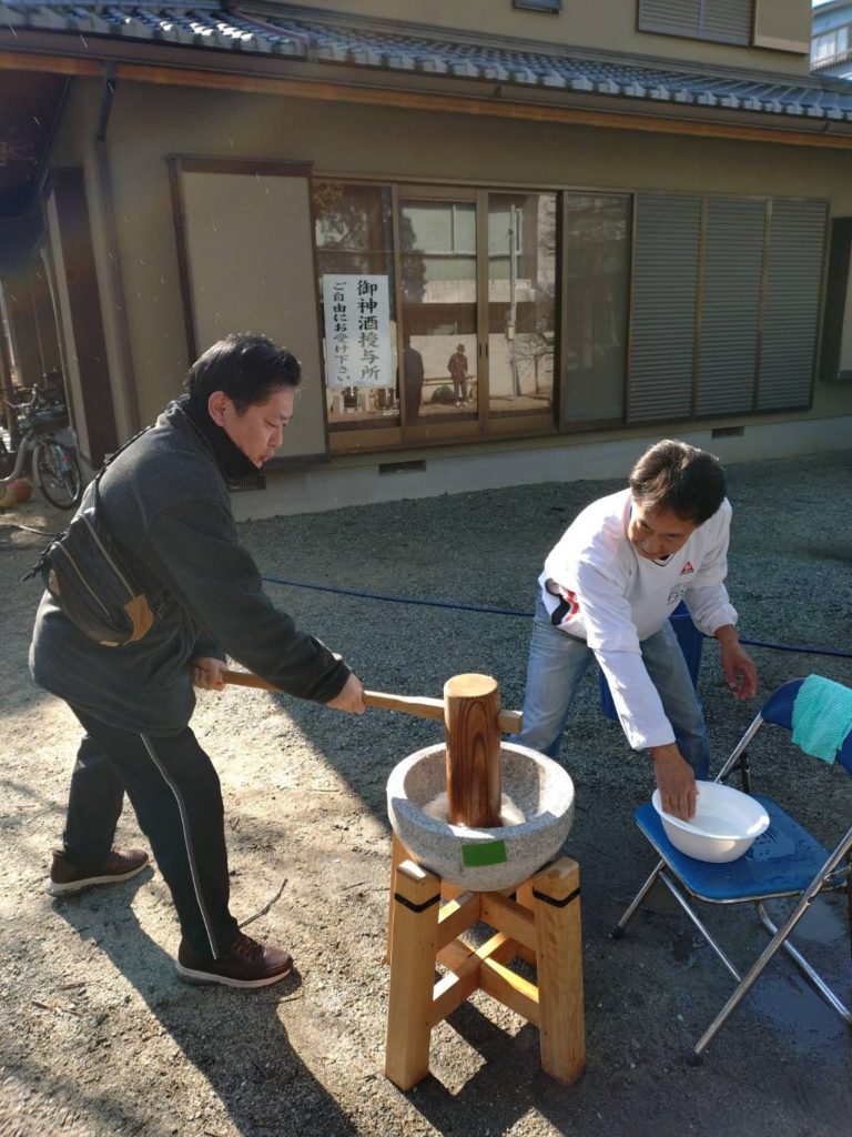 本日は『大道プロミネンス』勇社長の剣道倶楽部によるおもちつき(西長洲八幡神社)に参加してきました。