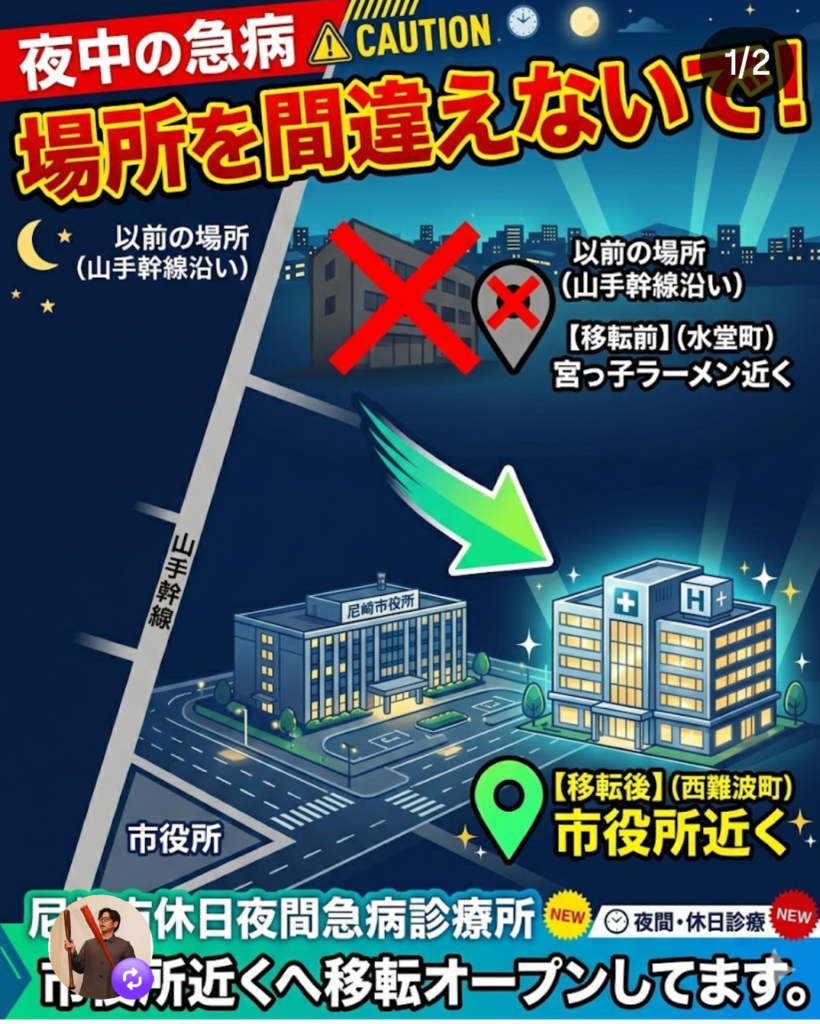 【休日夜間急病診療所の場所が変更されています‼️】